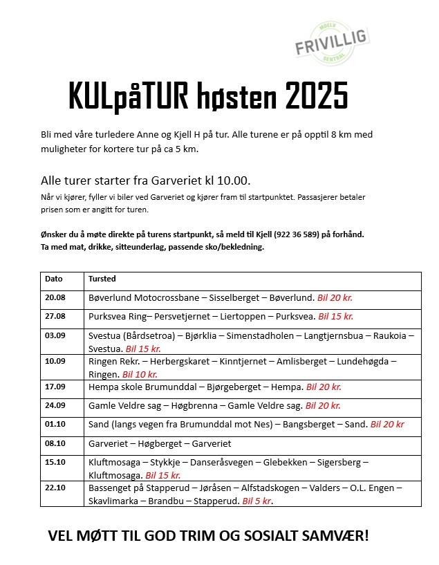 Du kan også kontakte frivilligsentralen for mer informasjon.