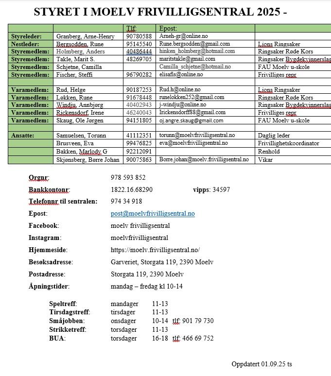 HVA SKJER PÅ FRIVILLIGSENTRALEN UKE FOR UKE