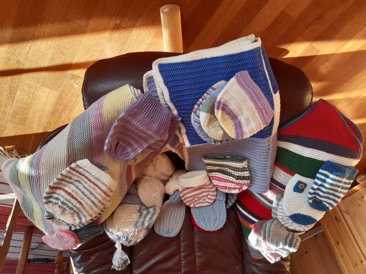 Mye av det som blir strikket på treffet, blir levert til intensivavd på Sykehuset Innlandet og/eller til andre som trenger det. Vet du om noen som trenger varme sokker, luer, gensere etc, ta kontakt med oss på Garveriet